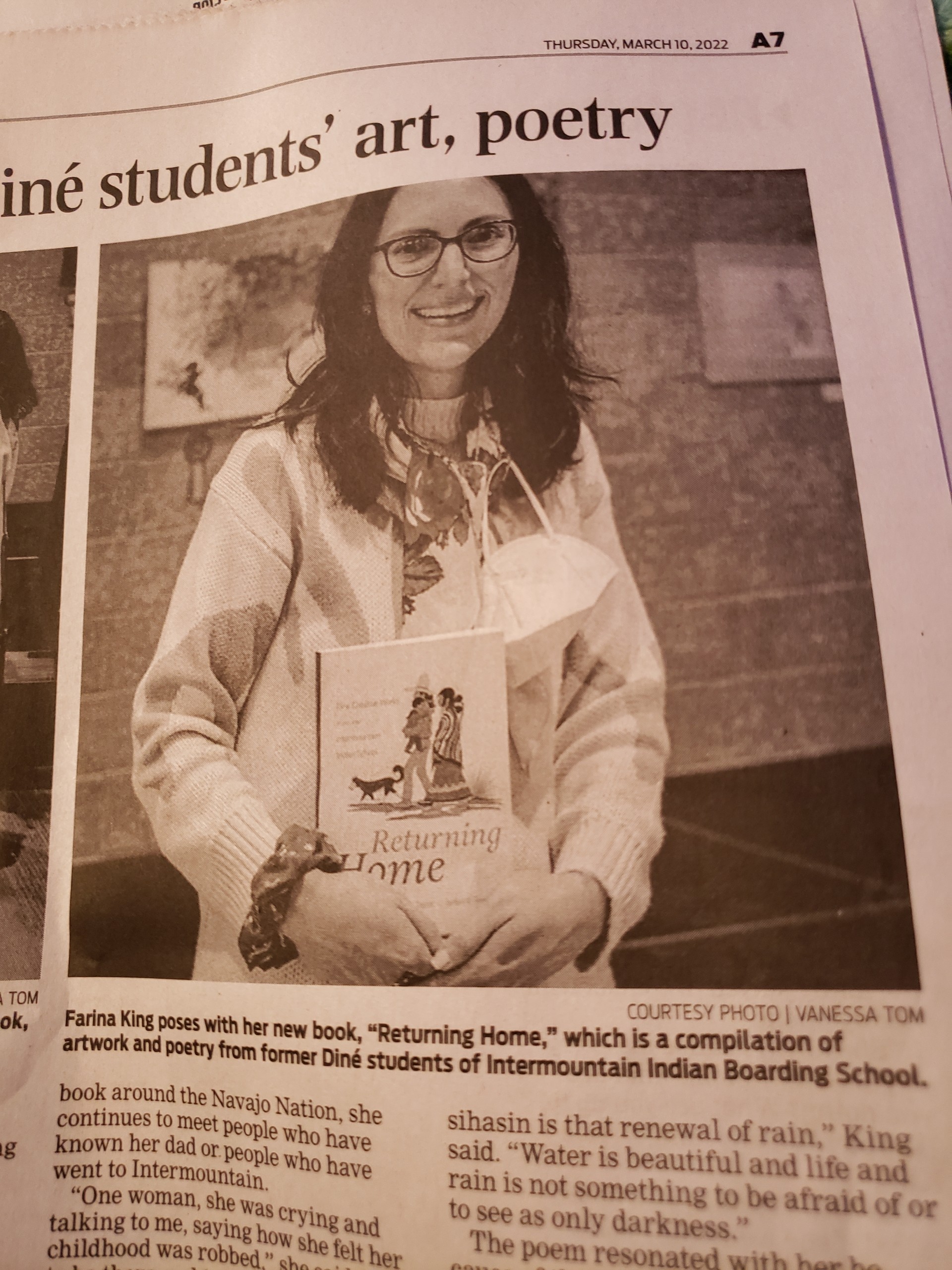 “‘Returning Home’ compiles Diné students’ art, poetry,” Navajo Times, March 10, 2022.